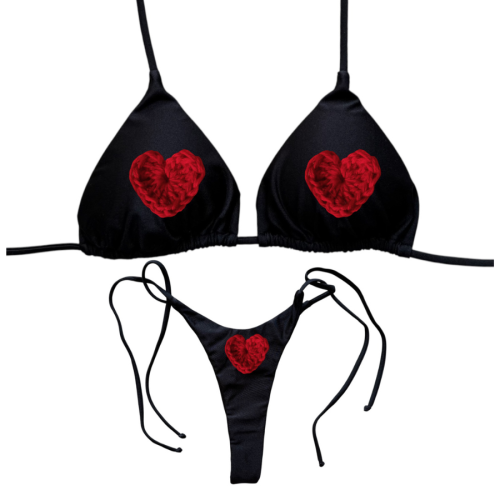 Selly Mully vellutino nero cuoricini e scritta