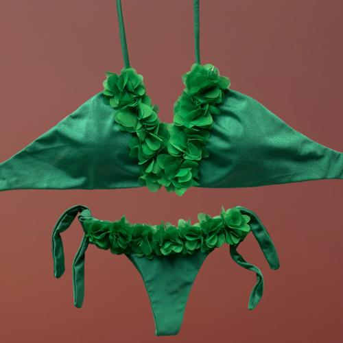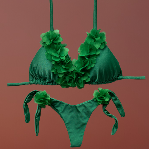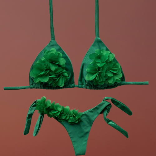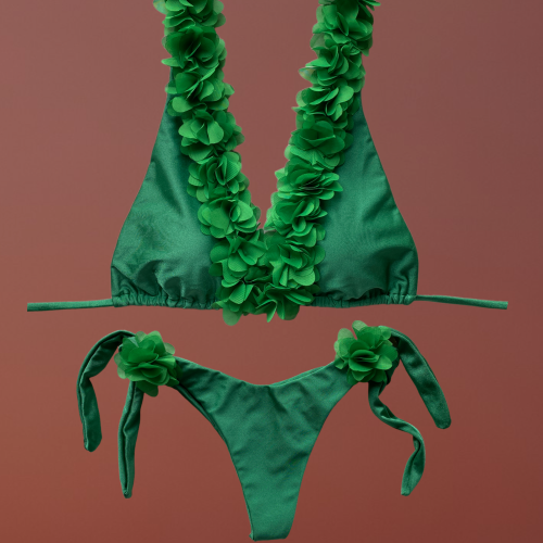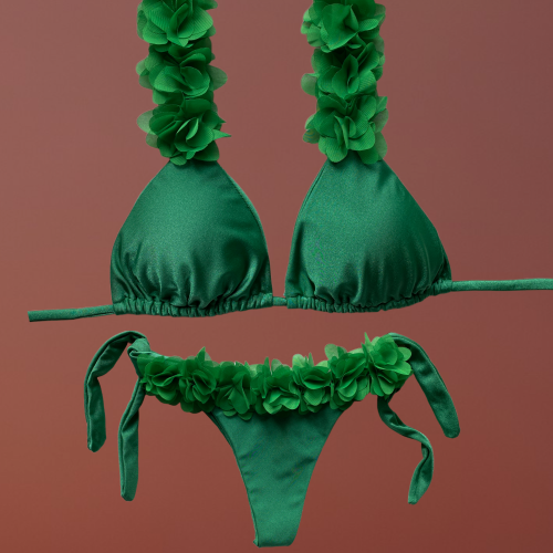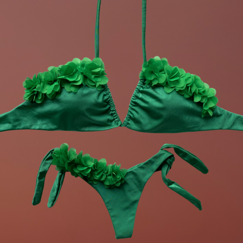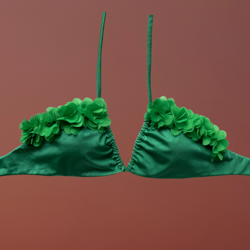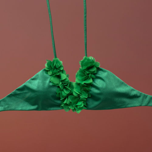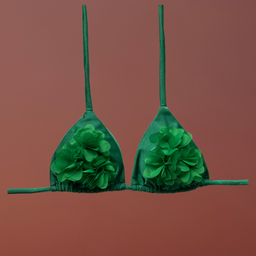 Badra top triangolo verde con fiori centrali