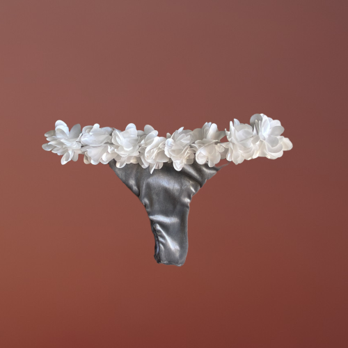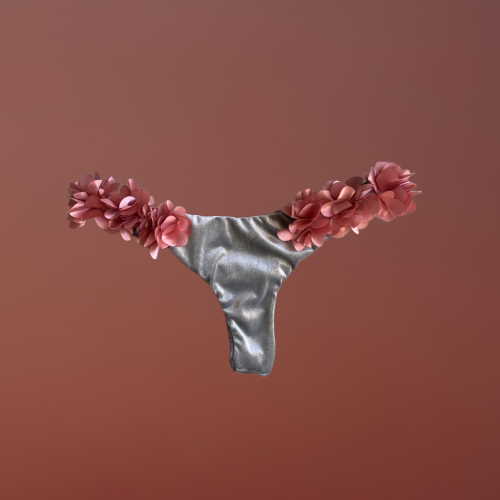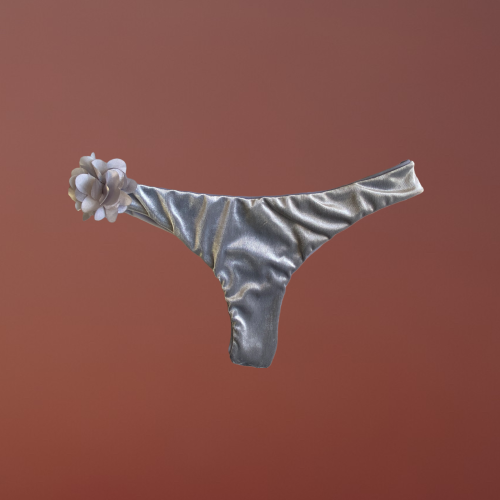 Mully brasiliana , perizoma o slip normale vellutino silver con fiori