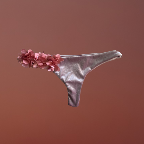 Mully brasiliana , perizoma o slip normale vellutino rosato con fiori