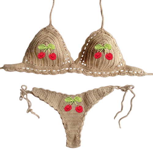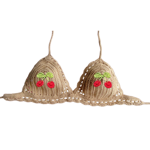 Selly Oliv triangolo uncinetto ciliegine base beige