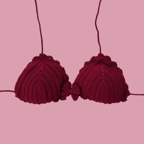 Nasser Garisinne top uncinetto bordeaux con fiocchetto o scegli il colore che preferisci