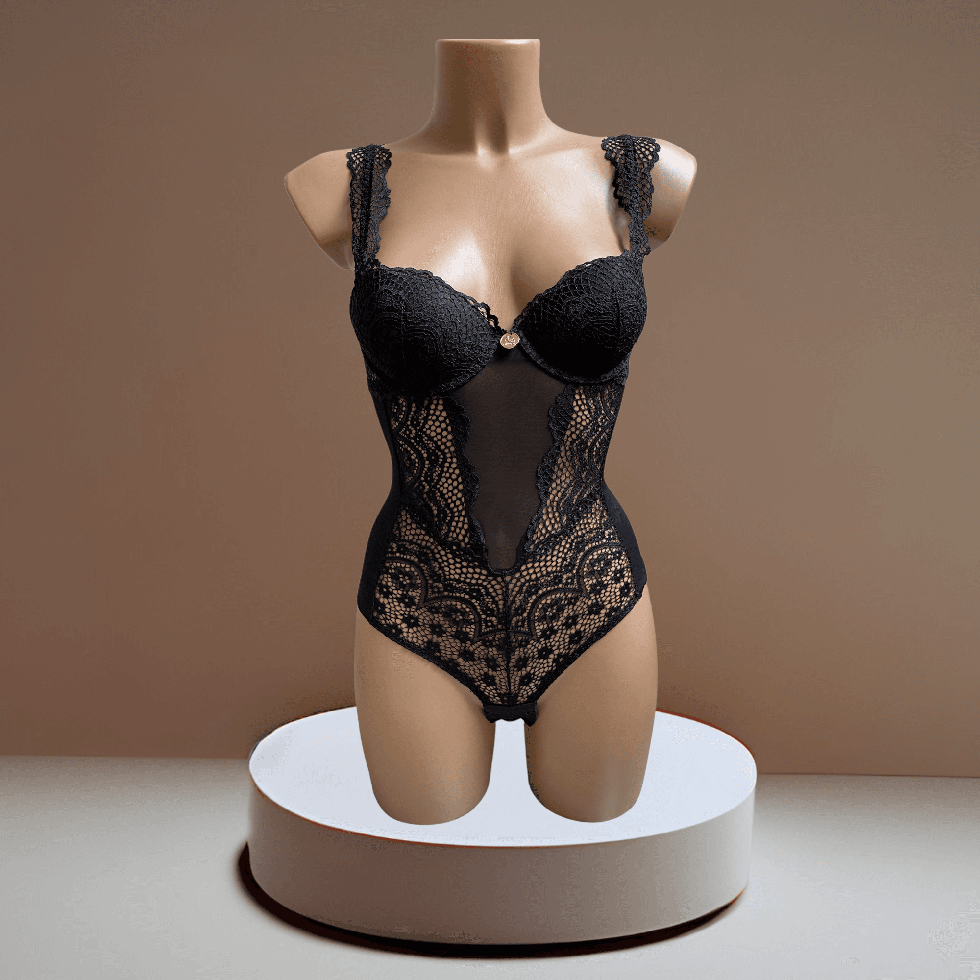 Fantastico body  in nero con trasparenze e pizzo. Ideato come lingerie o come sottogiacca.