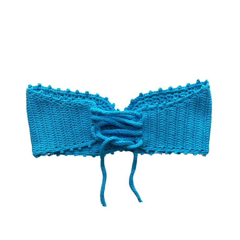 Il top non presenta le coppe e si allaccia come la seconda foto per avere un effetto corpetto