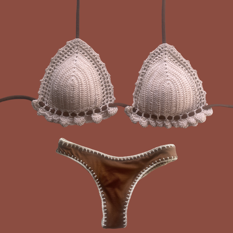 Nasser Garisinne brasiliana con dettagli uncinetto beige semplice