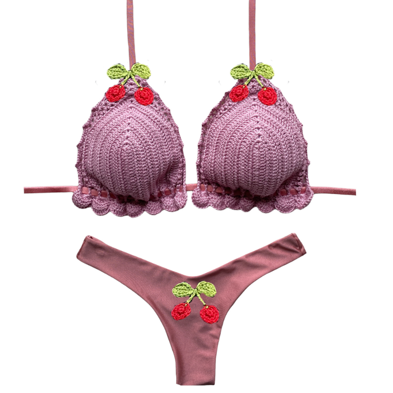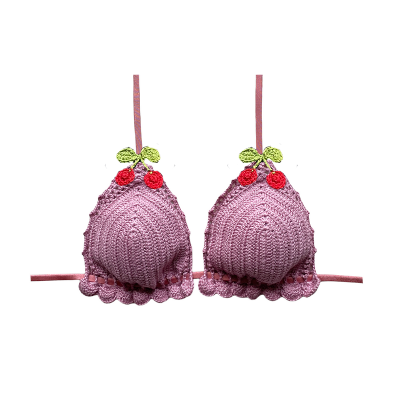 Selly Garisinne triangolo uncinetto ciliegine base rosa